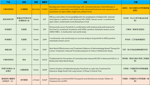 在头颈肿瘤、乳腺癌、肺癌、前列腺癌等多个疾病领域,卡瑞利珠单抗、阿得贝利单抗、吡咯替尼、氟唑帕利、法米替尼、醋酸阿比特龙片(II)等抗肿瘤新药相关研究一共入选了1项简短口头报告、4项壁报展示和1项电子壁报,彰显了AG百家乐医药强劲的研发实力。